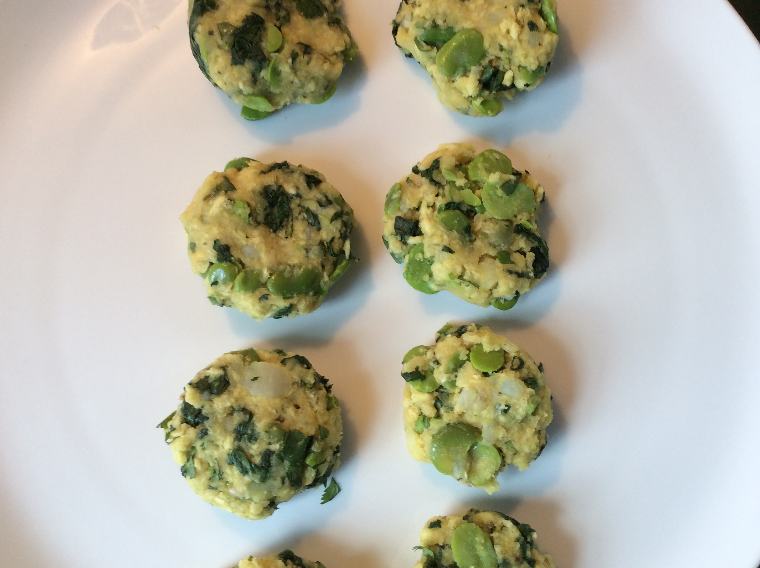 Recipe calls for mashing these bright green beauties with cumin, coriander, fennel, spinach, jalapeño, boiled potatoes, garlic, cilantro, breadcrumbs, egg (are you excited yet?).