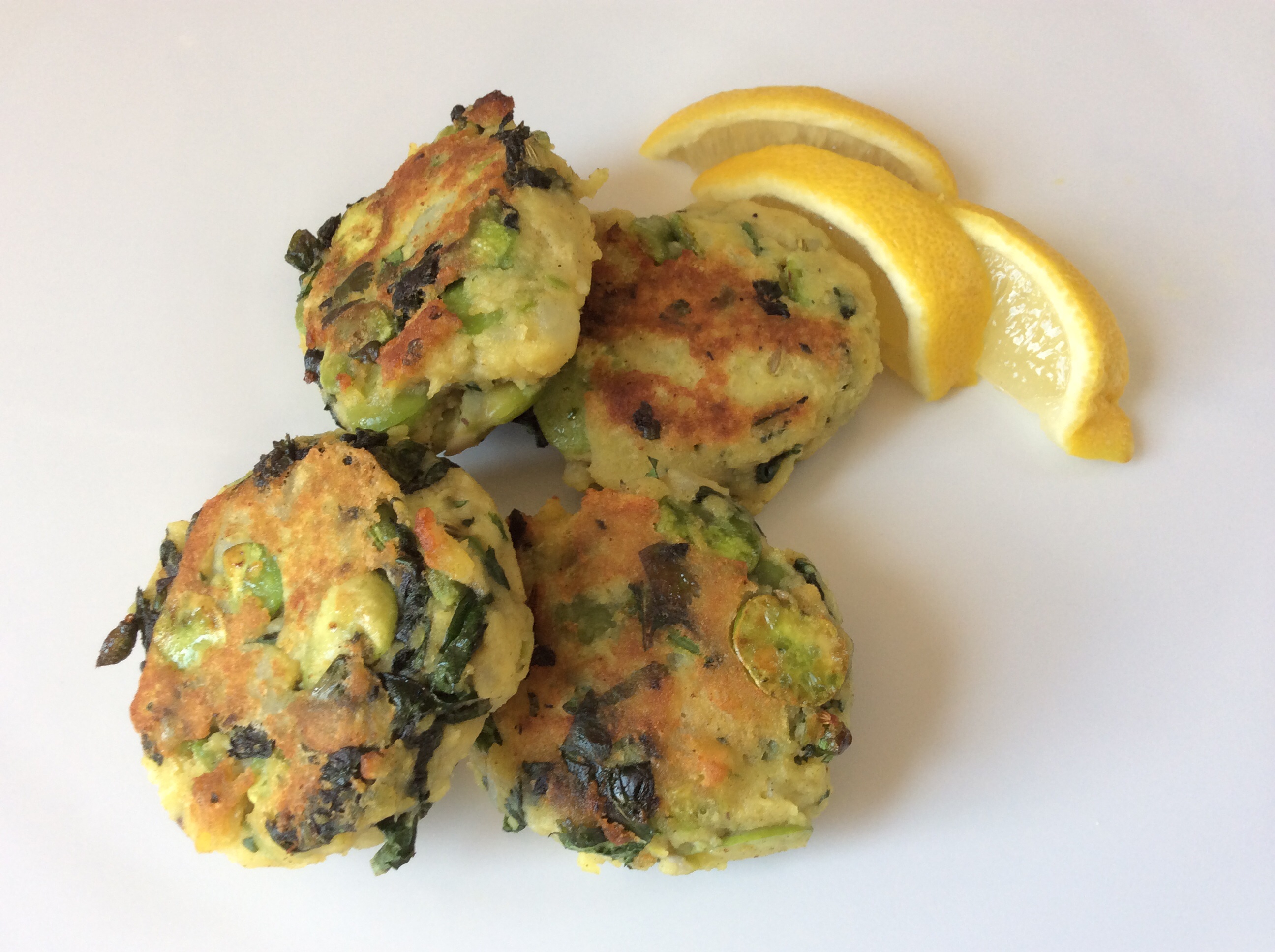 Fava beans are my favorite beans, hands down. They have a short spring season and take a few minutes of extra work to make ready, but there is nothing better than their nutty, sweet, earthy flavor. I’ve always enjoyed them simply handled: quickly boiled for a minute or two, skinned, with a touch of butter and salt, but then I came across a Yotam Ottolenghi recipe for Fava Bean Burgers…Fava beans pods are roughly six inches long and once you snap them open, you will find three to five fava beans in a soft, furry lining. Apparently you can boil the beans and eat as is, but each bean does have an additional protective sheath, and I prefer skinning them after boiling (as is also called for in this particular recipe).