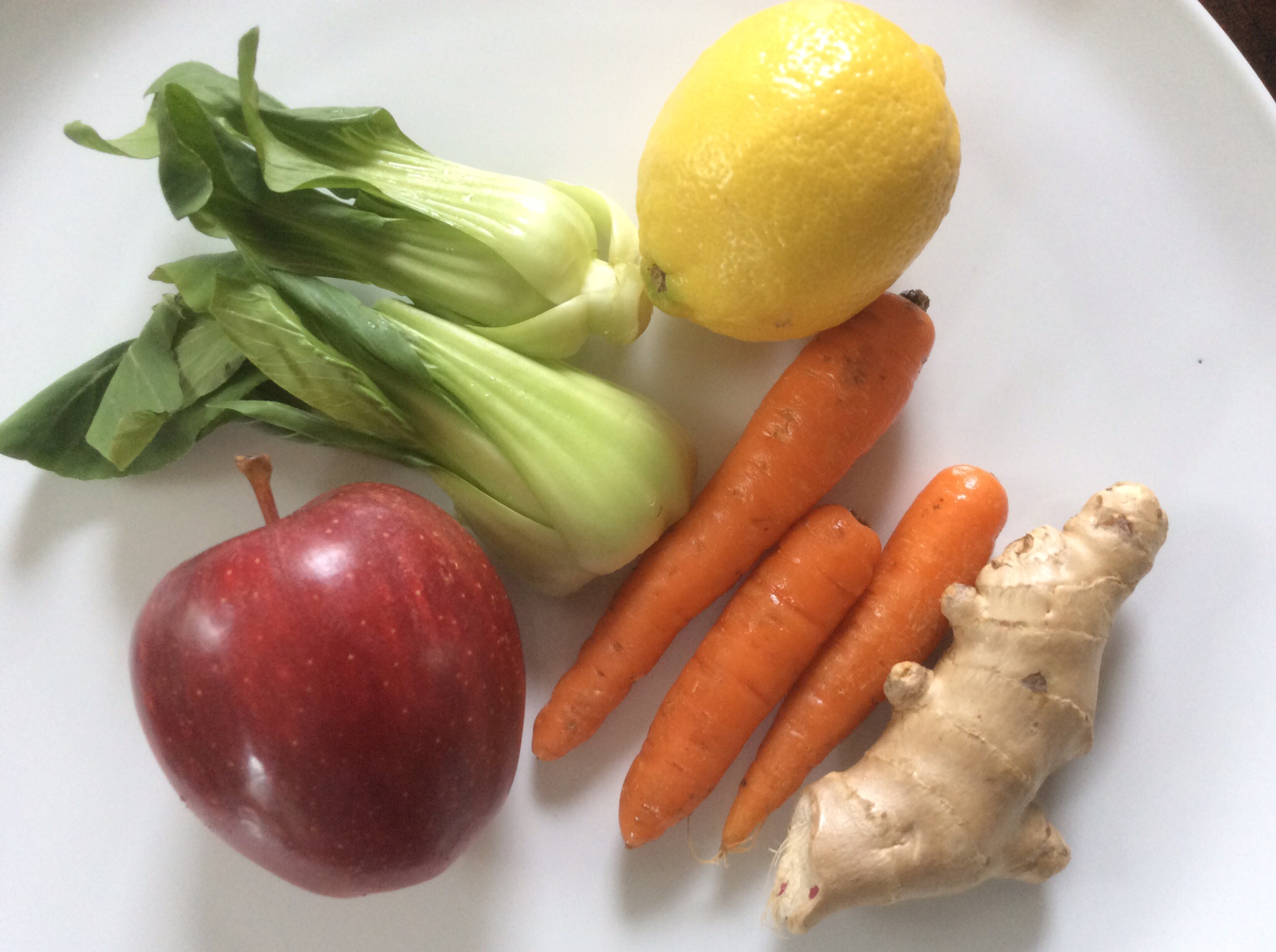 This is a perfect salad! Five ingredients and the only work required is some matchstick dicing, (which can be quite a calming task) grating and squeezing. The ginger and lemon juice mellow each other and result in a lovely dressing, bright and spicy, tossed with the crunchy, snappy fruits and vegetables. This is basically all you need: